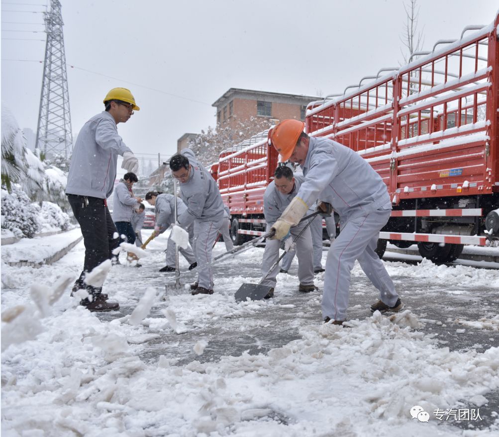 1月4日早晨,十堰迎来了2018年的第一场雪,鹅毛般的大雪纷纷扬扬的落下,大地万物银装素裹。雪景虽美,但也给大家的出行带来了不便,为畅通物流运输,方便员工出行,公司组织干部、员工开展扫雪活动。早上8:30,大家顶着风雪,带着铁锹和扫帚,相互配合,开始对公司道路及楼梯上的积雪进行清扫,一派热火朝天的景象,经过一个多小时的辛勤劳动,在欢声笑语中扫出了干净畅通的道路。